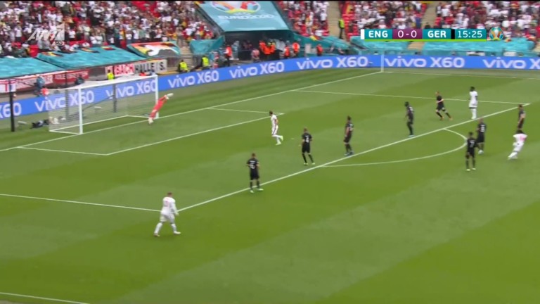 Ο ποδοσφαιριστής της Μάντσεστερ Σίτι, πήρε την μπάλα από τα αριστερά, έκοψε προς τα μέσα, πλάσαρε σωστά με το δεξί του πόδι, ωστόσο ο Μάνουελ Νόιερ φώναξε «παρών» και κατάφερε να βγάλει το σουτ του Άγγλου, κρατώντας το μηδέν.