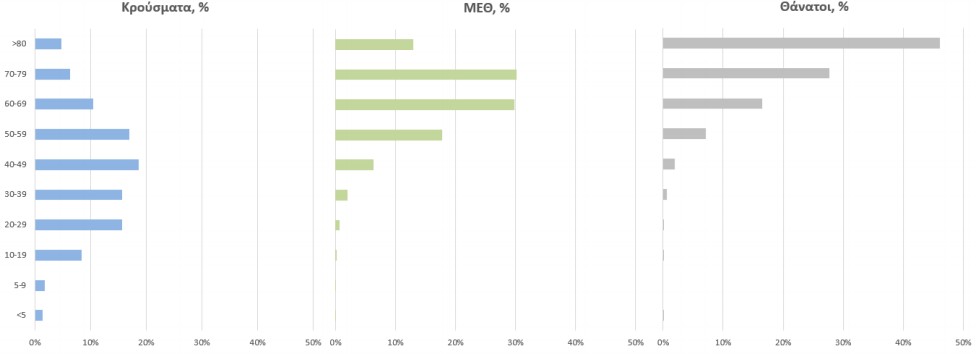 Η διάμεση ηλικία των κρουσμάτων είναι 43 έτη (εύρος 0.2 έως 106 έτη), ενώ η διάμεση ηλικία των θανόντων είναι 78 έτη (εύρος 0.2 έως 106 έτη).
