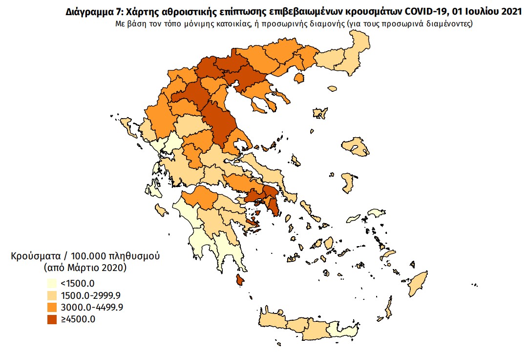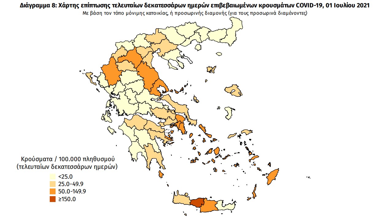 Η επιδημιολογική κατάσταση της Ελλάδας την Πέμπτη 1 Ιουλίου