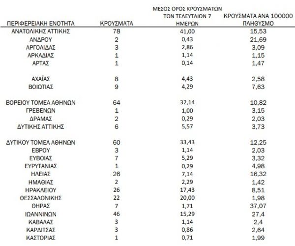 Τα περισσότερα κρούσματα (46) στα Γιάννενα διαγνώσθηκαν το Σάββατο 3 Ιουλίου, όπως φαίνεται στον πίνακα.