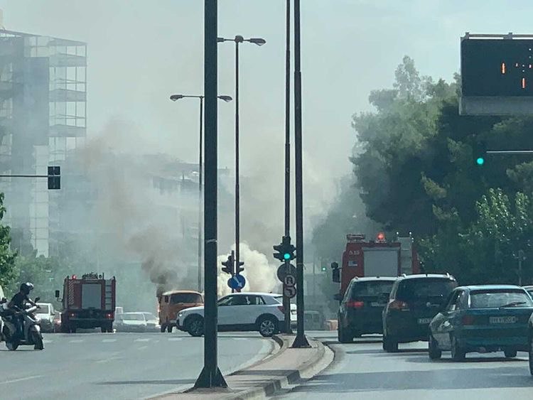 Φορτηγάκι πήρε φωτιά στη Μεσογείων – Κυκλοφοριακό χάος