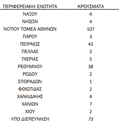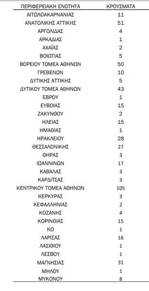 Ωστόσο δεν είναι λίγες οι περιοχές όπου εντοπίζεται μονοψήφιος αριθμός κρουσμάτων.