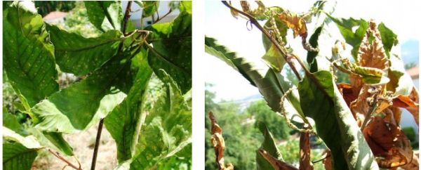 Μετά την προσβολή ακολουθεί πρόωρη φυλλόπτωση η οποία όταν οι κλιματικές συνθήκες είναι πολύ ευνοϊκές για την ασθένεια, φθάνει μέχρι και την ολοκληρωτική αποφύλλωση των δέντρων.