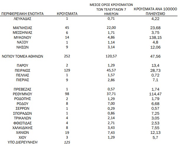 Συγκεκριμένα, η συμπρωτεύουσα σήμερα καταγράφει 62 κρούσματα, με το Ρέθυμνο (98) και το Ηράκλειο (72) να «δίνουν» περισσότερες μολύνσεις.