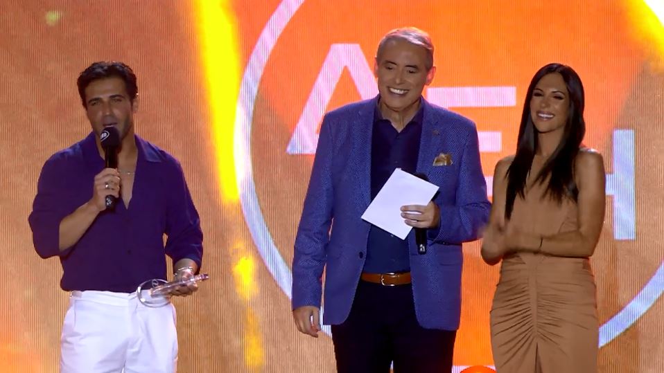 Οι οικοδεσπότες της πρωινής ενημερωτικής εκπομπής του MEGA «Κοινωνία Ώρα MEGA» έδωσαν το βραβείο στον -κουμπάρο της Ανθής- Πέτρο Ιακωβίδη για το «Σ’ αγαπάω σου φώναξα».