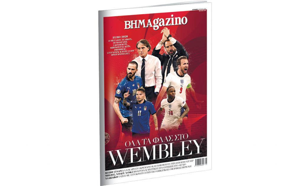 To “BHMAGAZINO” αυτής της Κυριακής έχει στραμμένο το ενδιαφέρον του στο Wembley, ακριβώς όπως ολόκληρος ο πλανήτης. Στο εμβληματικό στάδιο της Γηραιάς Αλβιόνας, πραγματοποιείται άλλωστε ο μεγάλος τελικός του Euro 2020, μέσα σε μία πανηγυρική ατμόσφαιρα, το βράδυ της Κυριακής.