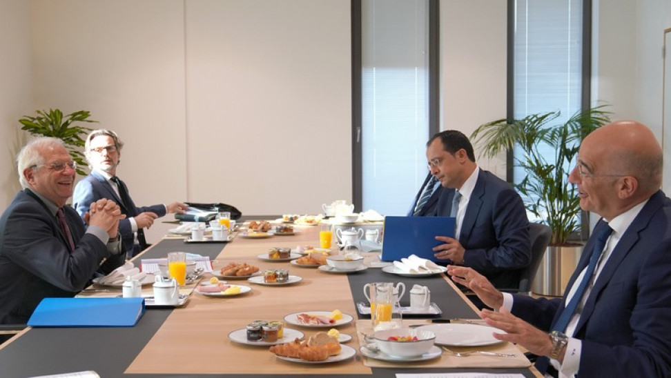 Ο Έλληνας υπουργός Εξωτερικών και ο Κύπριος ομόλογός του, στο περιθώριο του Συμβουλίου Εξωτερικών Υποθέσεων της ΕΕ, είχαν συνάντηση με τον ύπατο εκπρόσωπο της ΕΕ Ζοζέπ Μπορέλ