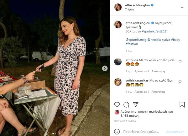 Μετρώντας αντίστροφα για τη γέννηση του παιδιού της, η Έφη Αχτσιόγλου έκανε μια δημόσια εμφάνιση και δημοσίευσε δύο ολόσωμες φωτογραφίες της με φουσκωμένη κοιλιά.