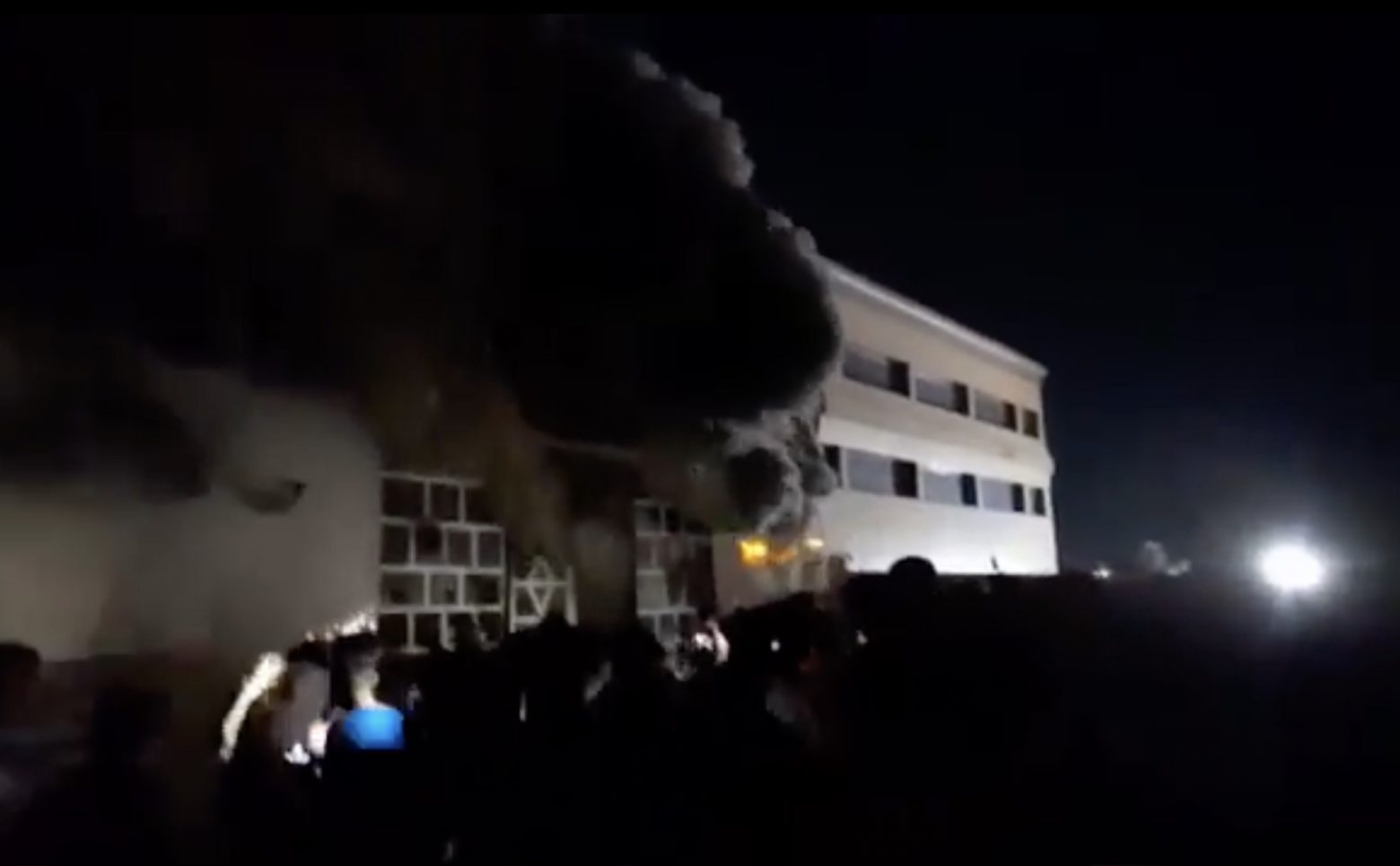 Βίντεο που αναρτήθηκαν σε ιστοτόπους κοινωνικής δικτύωσης δείχνουν το κτίριο να φλέγεται και από πάνω να υψώνεται πυκνός μαύρος καπνός.