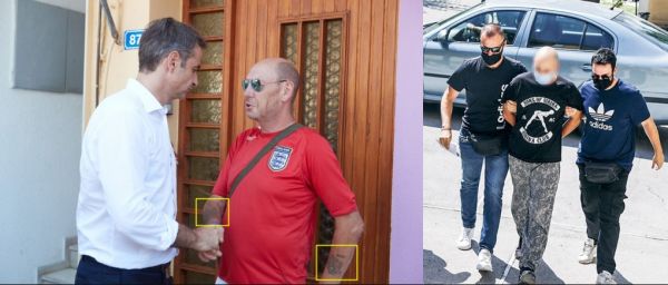 Βασική διαφορά ανάμεσα στους δύο άνδρες είναι η δερματοστιξία (τατουάζ). Όπως φαίνεται στη φωτογραφία, ο άνδρας που κάνει τη χειραψία με τον πρωθυπουργό στο Νυδρί της Λευκάδας και φορά κόκκινο t-shirt της Αγγλίας από το παγκόσμιο κύπελλο του 2018 φέρει στους πήχεις του τατουάζ.