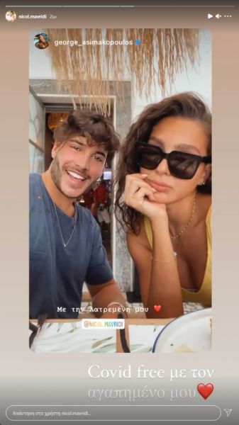 Μάλιστα, σήμερα το πρωί συναντήθηκε με τον πρώην συμπαίκτη της από το ριάλιτι επιβίωσης, Γιώργο Ασημακόπουλο, και έβγαλαν μαζί μια φωτογραφία. «Covid free με τον αγαπημένο μου», έγραψε χαρακτηριστικά η ίδια.