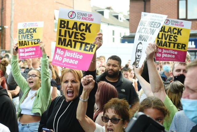 Η Felicite Sora, 35 ετών, πήγε στη διαδήλωση με τον 5χρονο γιο της Ρούμπεν. Η ίδια εργαζόμενη στο Εθνικό Σύστημα Υγείας της Βρετανίας, μετακόμισε πριν έξι χρόνια στο Μάντσεστερ από το Παρίσι, ανέφερε ότι έχει δει το ίδιο μίσος στα μέσα κοινωνικής δικτύωσης, απέναντι στον μαύρο ποδοσφαιριστή Κίλιαν Εμπαπέ όταν έχασε το πέναλτι για τη Γαλλία.
