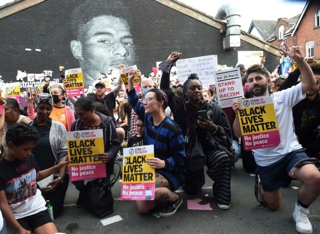 Απέναντι στις ρατσιστικές επιθέσεις που δέχονται οι ποδοσφαιριστές της Εθνικής Αγγλίας Μάρκους Ράσφορντ, Μπουκαγιό Σάκα και Τζέιντον Σάντσο, πραγματοποιήθηκε δυναμική αντιρατσιστική πορεία στο Μάντεστερ.