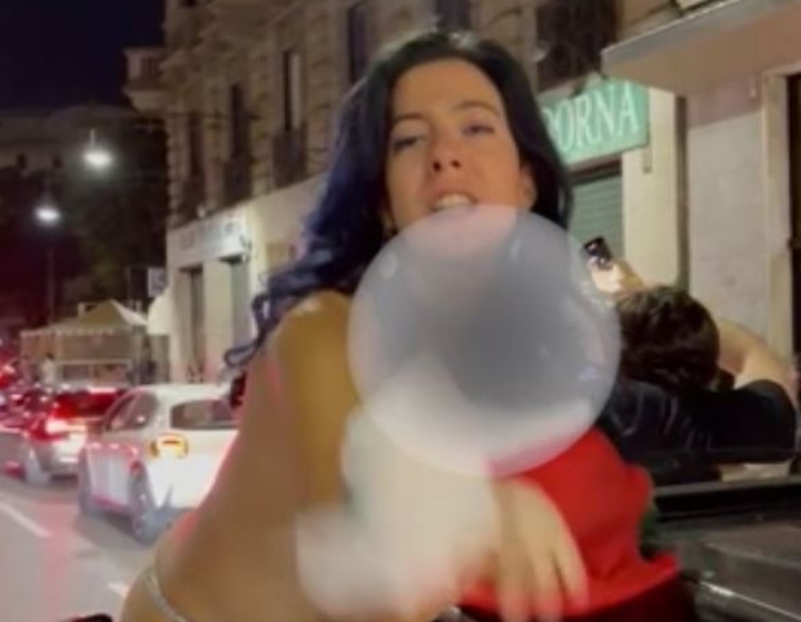 Όπως θα δείτε στο βίντεο που εξασφάλισε το Mykonos Live TV, η εκστασιασμένη οπαδός με την ιταλική σημαία στα χέρια και το κεφάλι της έξω από το παράθυρο του αυτοκινήτου πανηγυρίζει την κατάκτηση του τροπαίου.