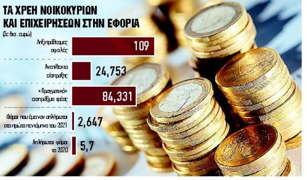 Από τις αρχές του 2020 μέχρι και τα τέλη Μαΐου νοικοκυριά και επιχειρήσεις έχουν αφήσει απλήρωτους φόρους στην Εφορία που συνολικά υπερβαίνουν τα 8,3 δισ. ευρώ. Το μεγαλύτερο τμήμα των οφειλών μπορεί να ενταχθεί στη νέα ρύθμιση οφειλών, η οποία θα «τρέξει» από τον Ιανουάριο το 2022 ενώ οι φορολογούμενοι που δεν είναι πληττόμενοι έχουν τη δυνατότητα να ρυθμίσουν τις οφειλές τους με βάση την πάγια ρύθμιση των 24 ή 48 μηνιαίων δόσεων. Επιπλέον, ο υπουργός Οικονομικών ανέφερε πως θα υπάρχει πρόβλεψη και για όσους είχαν ρυθμισμένες οφειλές και δέχθηκαν πλήγμα. Ουσιαστικά, θα δοθεί το δικαίωμα επανένταξης όσων ήταν ενταγμένοι στις ρυθμίσεις των 100-120 δόσεων και δεν κατάφεραν εν μέσω πανδημίας να ανταποκριθούν στις υποχρεώσεις τους να επανενταχθούν. Οι δόσεις που χάθηκαν θα μεταφερθούν στο τέλος της ρύθμισης.
