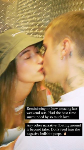 Με ένα story της στο Instagram η Χέιλι Μπίμπερ απαντά στα δημοσιεύματα που τη θέλουν να είχε καυγά με τον Τζάστιν Μπίμπερ.