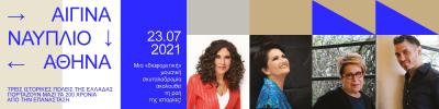 Για δύο βραδιές, τρεις σημαντικές πόλεις, η Αίγινα, το Ναύπλιο και η Αθήνα, γιορτάζουν μαζί, με μια ξεχωριστή μουσική σκυταλοδρομία και τέσσερις κορυφαίους καλλιτέχνες, τα 200 χρόνια από την ελληνική επανάσταση… Η Δήμητρα Γαλάνη και ο Μιχάλης Χατζηγιάννης, η Άλκηστις Πρωτοψάλτη και η Ελευθερία Αρβανιτάκη αλλάζουν τη μουσική σκυτάλη, κατά τη ροή της ιστορίας, και μας χαρίζουν μια ξεχωριστή εμπειρία…