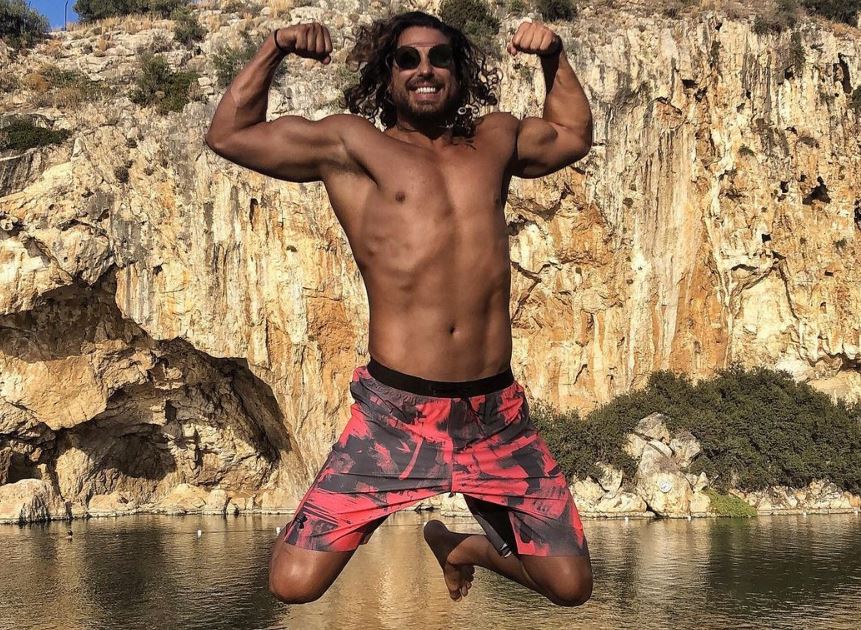 Ο νικητής του περσινού J2US (είχε κερδίσει την πρώτη θέση με τη Josephine) ποζάρει με το μαγιό του και κρατώντας μια περικεφαλαία και στέλνει μήνυμα όλο νόημα.