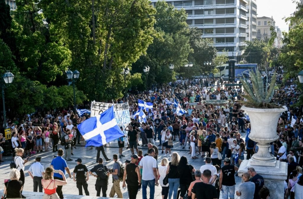 Anti-vaccine groups, extreme right ideologues, fanatical religious zealots including Old Calendar Orthodox Christians, outlandish conspiracy theorists who disseminate unfounded theories and see enemies everywhere, deniers of science and progress in general, and supporters of a fortress-Greece all together paraded in a demonstration on 14 July in Syntagma Square in Athens, literally obstructing the country’s effort to free itself from the bonds of the fierce and deadly COVID-19 epidemic.