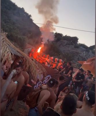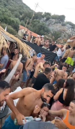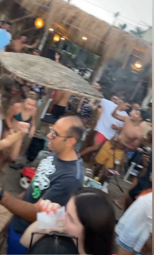 Στο επίμαχο βίντεο, διαπιστώνεται ότι τη συγκεκριμένη βραδιά οι θαμώνες του beach bar στριμώχτηκαν στο κέντρο του μαγαζιού, ο ένας πάνω στον άλλον.