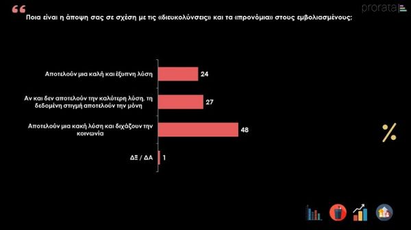 Ουσιαστικά δηλαδή υπάρχει ένα 51% το οποίο με τον ένα ή τον άλλο τρόπο θεωρεί από αναγκαίο κακό έως «μια καλή και έξυπνη λύση» τα «προνόμια» για να αυξηθούν οι εμβολιασμοί, σε αντίθεση με το 48% που αντιτίθεται με σαφή και ξεκάθαρο τρόπο. Υπάρχει επίσης και 1% στην κατηγορία του «δεν ξέρω/δεν απαντώ».