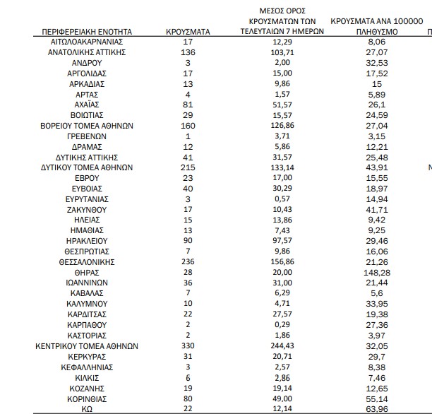 Οι περιοχές που ξεπέρασαν κατά πολύ αυτό το ποσοστό, είναι κυρίως οι περιοχές που είχαν έντονο επιδημιολογικό φορτίο τις προηγούμενες ημέρες.