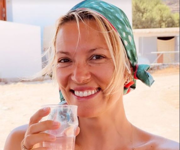 Η Βίκυ Καγιά απολαμβάνει το γαλάζιο των Κυκλάδων με την κορούλα της