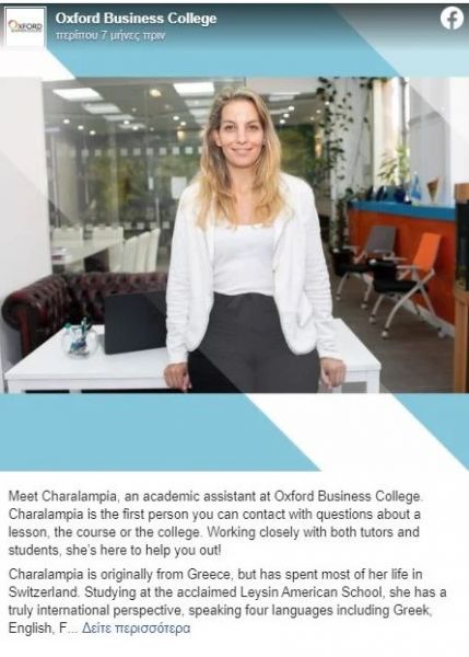 Η 35χρονη σήμερα Χαρά, διαπρέπει στο εξωτερικό, καθώς είναι ακαδημαϊκή σύμβουλος στο Oxford Business College από το 2019.
