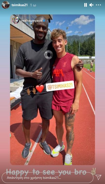 Ο λόγος για τον Γιάγια Τουρέ. Ο Ιβοριανός επισκέφθηκε τις αθλητικές εγκαταστάσεις που κάνει προπονήσεις η Λίβερπουλ και συνομίλησε με τον τεχνικό των Reds, Γιούργκεν Κλοπ, αλλά και με τους ποδοσφαιριστές της βρετανικής ομάδας, μεταξύ των οποίων ήταν και ο Κώστας Τσιμίκας. Οι δύο τους γνωρίζονται πολύ καλά, αφού συνυπήρξαν στον Ολυμπιακό.