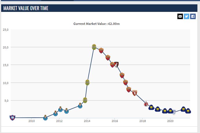 Πρόκειται για έναν πολύ σπουδαίο μεσοεπιθετικό, ο οποίος στην καριέρα του έχει κάνει μεταγραφές 51 εκατ. ευρώ, ενώ το καλοκαίρι του 2014 η μετοχή του στο ποδοσφαιρικό χρηματιστήριο άγγιξε τα 20 εκατ. ευρώ. Πλέον, η αξία του είναι στα 2 εκατ. ευρώ.