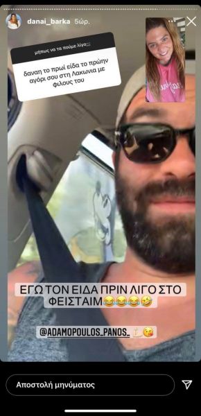 Την στιγμή που ένας διαδικτυακός της φίλος την ενημέρωσε πως είδε τον Πάνο Αδαμόπουλο στην Λακωνία εκείνη απάντησε πως και για εκείνη ισχύει το ίδιο, αφού οι δυο τους μόλις πριν από λίγο είχαν συνομιλήσει μέσω κάμερας.