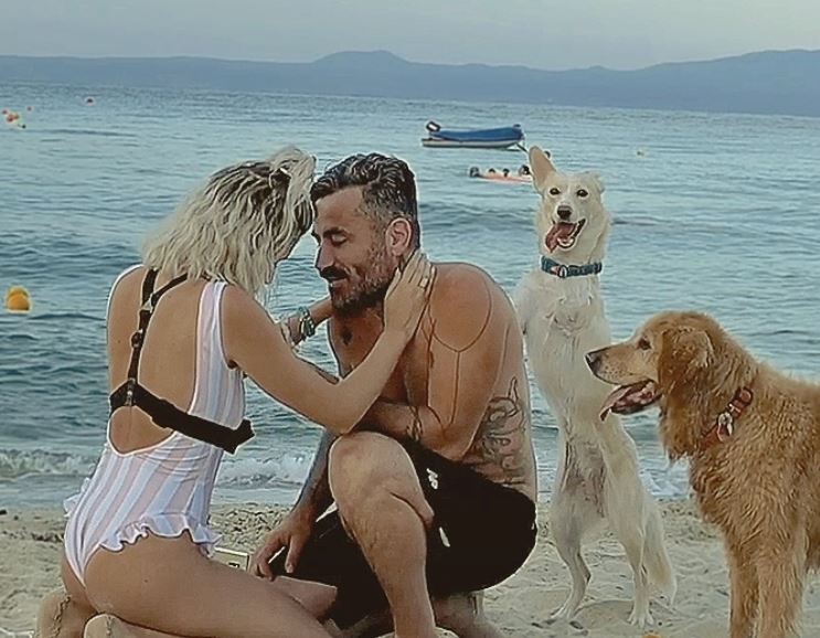 Ο παρουσιαστής και tattoo artist έκανε πρόταση γάμου στην αγαπημένη του στη παραλία, με «συνεργούς» τα δύο σκυλιά τους, που δήθεν έφερναν τα μπαλάκια που τους πέταγε.