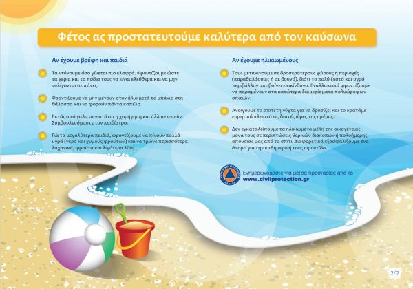 Έκτακτο δελτίο επικίνδυνων καιρικών φαινομένων εξέδωσε η Εθνική Μετεωρολογική Υπηρεσία (ΕΜΥ). Σύμφωνα με την ΕΜΥ, οι θερμές αέριες μάζες που κινούνται από τη βόρεια Αφρική προς την Ελλάδα θα προκαλέσουν αισθητή άνοδο της θερμοκρασίας από αύριο Τρίτη (27-7-2021).