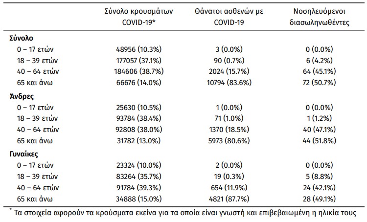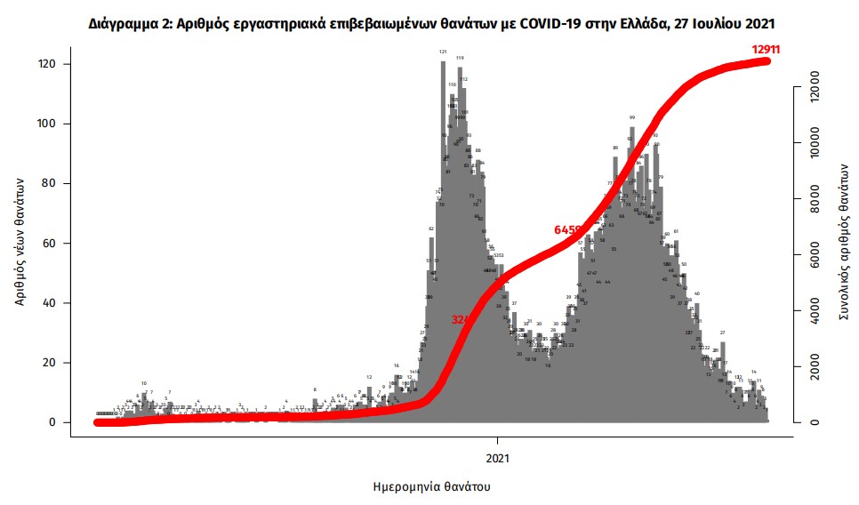 Οι νέοι θάνατοι ασθενών με COVID-19 είναι 8, ενώ από την έναρξη της επιδημίας έχουν καταγραφεί συνολικά 12.911 θάνατοι. Το 95.2% είχε υποκείμενο νόσημα ή/και ηλικία 70 ετών και άνω.