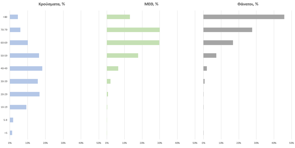 Η διάμεση ηλικία των κρουσμάτων είναι 41 έτη (εύρος 0.2 έως 106 έτη), ενώ η διάμεση ηλικία των θανόντων είναι 78 έτη (εύρος 0.2 έως 106 έτη).