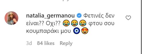 Μάλιστα την ανάρτηση του Γιώργου Τσαλίκη σχολίασε με χιούμορ και η Ναταλία Γερμανού, η οποία σημειώνει: