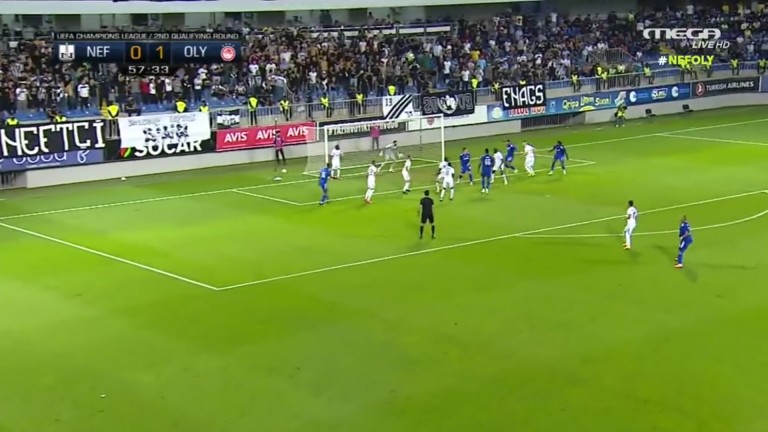 Ο Βαλμπουενά έκανε το κόρνερ, η μπάλα χτύπησε πάνω στον Σισέ και έφτασε στον Χασάν που τελείωσε τη φάση, ωστόσο ο τερματοφύλακας της Νέφτσι πρόλαβε και σταμάτησε τον Αιγύπτιο, διατηρώντας έτσι το 1-0.