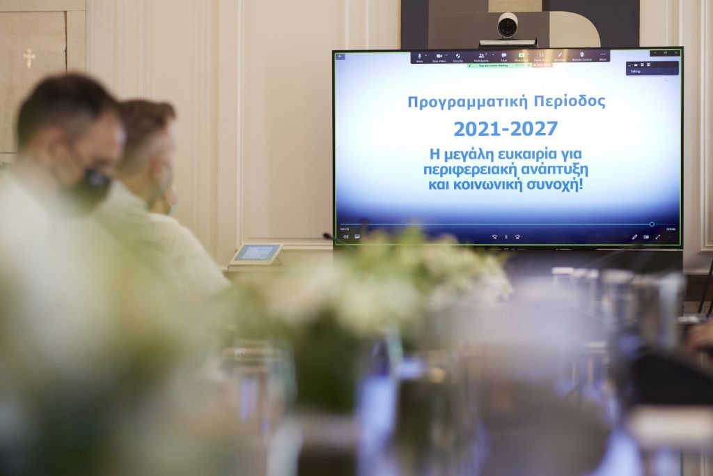 Στη συνέχεια της τηλεδιάσκεψης ακολούθησε η παρουσίαση του προγράμματος «ΕΣΠΑ 2021-2027» από τον κ. Γεωργιάδη και τους αρμόδιους Γραμματείς.