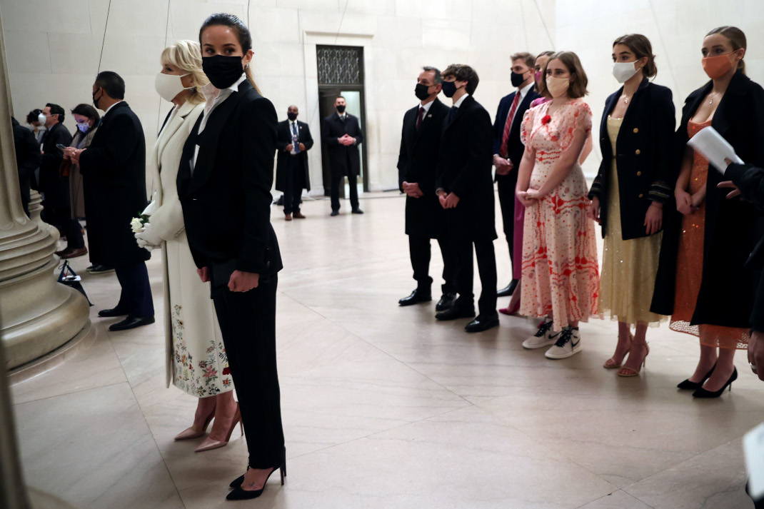 Σημειώνεται ότι πρόκειται για την εγγονή του Προέδρου των ΗΠΑ, η οποία έσπασε το στιλιστικό πρωτόκολλο και εμφανίστηκε στην ορκωμοσία του με αθλητικά παπούτσια.