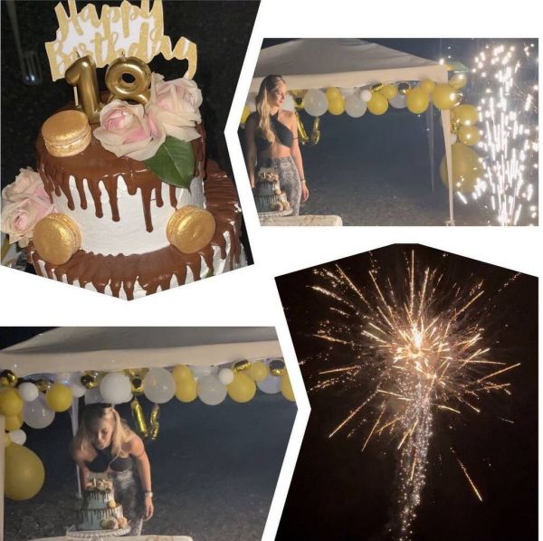 Εντυπωσιακή τούρτα, έγινε κοντά στη θάλασσα, η εορτάζουσα έλαμπε από ομορφιά ενώ τα δεκάδες πυροτεχνήματα στον ουρανό την ώρα που έσβηνε τα 18 κεράκια της, ήταν πράγματι ιδιαίτερα φαντασμαγορικά.