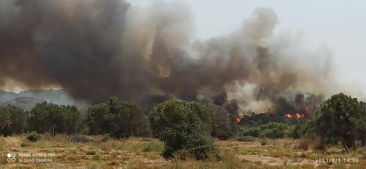 Η πυρκαγιά καίει αγροτοδασική περιοχή στη δυτική πλευρά μεταξύ των κοινοτήτων Σορωνής και Θολού, ενώ η κινητοποίηση της Πυροσβεστικής με επίγεια, αλλά και εναέρια μέσα που έσπευσαν στο σημείο, ήταν άμεση