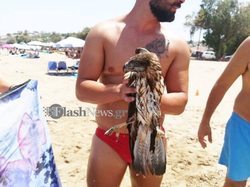 Ο κ. Πανηγυράκης έβγαλε το γεράκι στην ακτή και ενημέρωσε το δασαρχείο για να το παραλάβει, να εξεταστεί, να του παρασχεθούν οι πρώτες βοήθειες και αν χρειαστεί να μεταφερθεί σε ειδικό κέντρο για θεραπεία. Δείτε τις χαρακτηριστικές φωτογραφίες από το flashnews.gr: