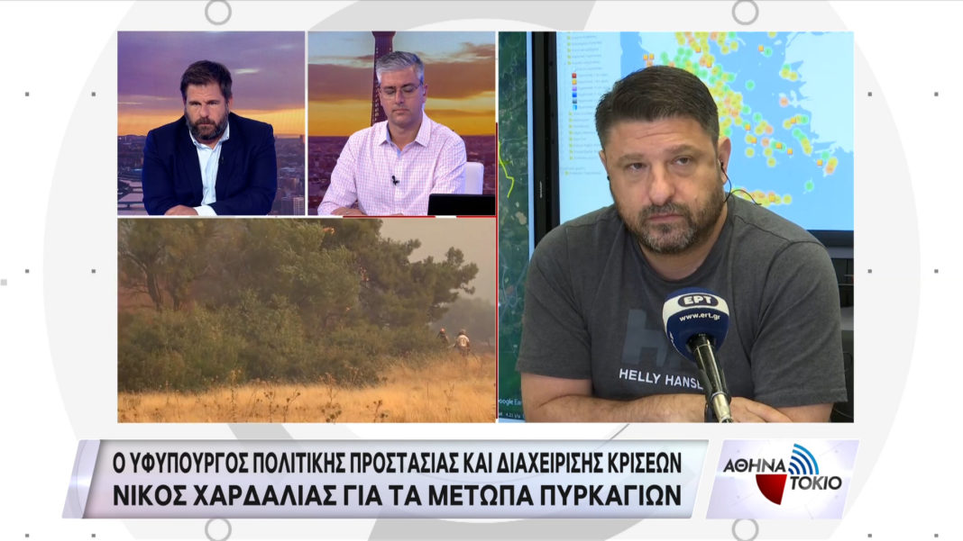 Ο υφυπουργός Πολιτικής Προστασίας, Νίκος Χαρδαλιάς μετέφερε την εικόνα από τα πύρινα μέτωπα που υπάρχουν πανελλαδικά, ενώ μίλησε και για τη μάχη απέναντι στον κοροναϊό.