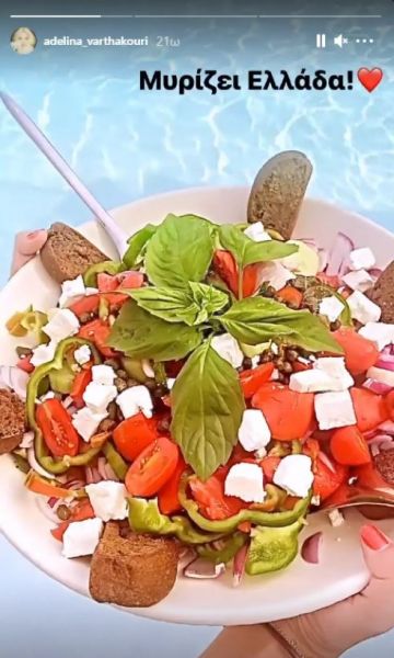 Σε άλλο story έδειξε την ελληνική χωριάτικη σαλάτα που απόλαυσε.