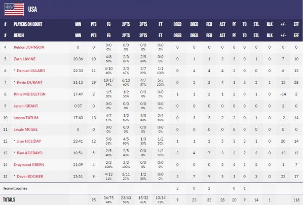 Οι ΗΠΑ δυσκολεύτηκαν στο πρώτο ημίχρονο, όμως ο Κέβιν Ντουράντ πήρε την ομάδα στις πλάτες του και την έστειλε στα ημιτελικά του Ολυμπιακού Τουρνουά του Τόκιο με νίκη 95-81 επί της Ισπανίας.