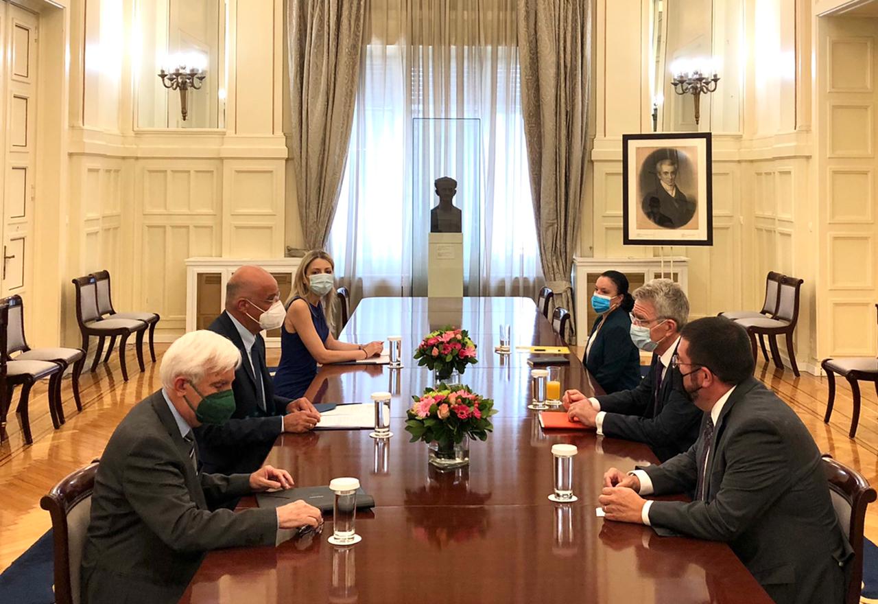 Με τον πρέσβη των ΗΠΑ Τζ. Πάιατ συναντήθηκε ο Νίκος Δένδιας και συζήτησαν για την εμβάθυνση των σχέσεων Ελλάδας και ΗΠΑ καθώς και τις πρόσφατες εξελίξεις στην Ανατολική Μεσόγειο και την ευρύτερη περιοχή της Μέσης Ανατολής