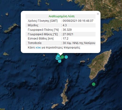 Με επίκεντρο τον θαλάσσιο χώρο 25 χλμ. ΝΔ της πόλης της Τήλου