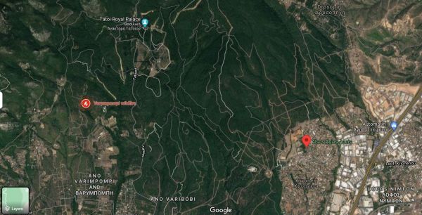 Στο βάθος ο καπνός είναι πιο σκούρος απ’ ό,τι στη Βαρυμπόμπη. Φλόγες δεν φαίνονται αλλά στον αέρα υπάρχει αυξημένη κινητικότητα. Ελικόπτερα και ένα αεροσκάφος πραγματοποιούν ρίψεις νερού.