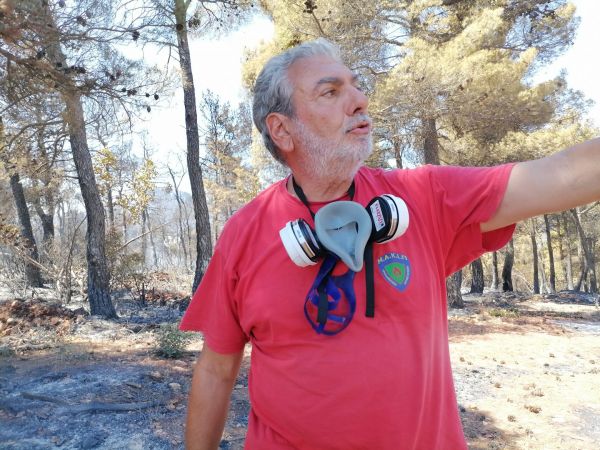 Ο Αντώνης Πετρόπουλος, 66 ετών, συνταξιούχος τραπεζικός με ειδίκευση στην πληροφορική και εθελοντής πυροσβέστης και μέλος της ΜΑΚΙΠ (Μονάδα Αντιμετώπισης Κινδύνων Ιπποκρατείου Πολιτείας), ήταν εκεί καθ’ όλη τη διάρκεια της μάχης με τις φλόγες.