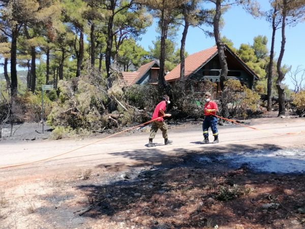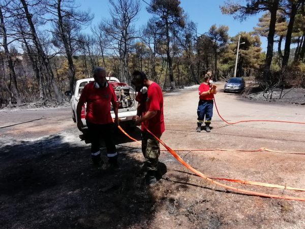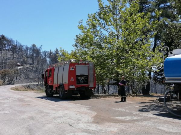 Παρά το γεγονός ότι δεν υπάρχει κάποιο μέτωπο φωτιάς στη συγκεκριμένη περιοχή, υπό τον κίνδυνο αναζωπύρωσης, συνεχίζουν άπαντες να είναι σε επιφυλακή.